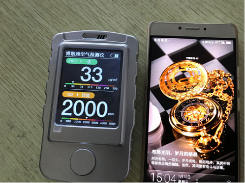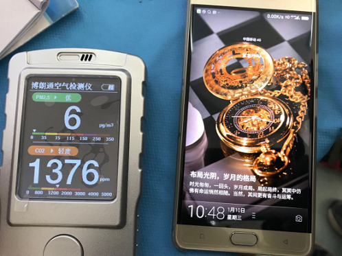 2018年1月10日下午,室內(nèi)空氣PM2.5:33,CO2仍然爆表,